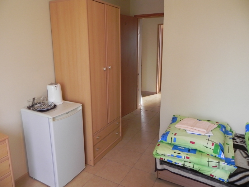 Pokoje w budynku wczasowym zlokalizowane są na parterze i pierwszym piętrze murowanego budynku, położonego w bezpośrednim sąsiedztwie domków letniskowych. Pokoje na pierwszym piętrze dysponują balkonami. Pokoje na parterze mają bezpośrednie wejścia z zewnątrz.